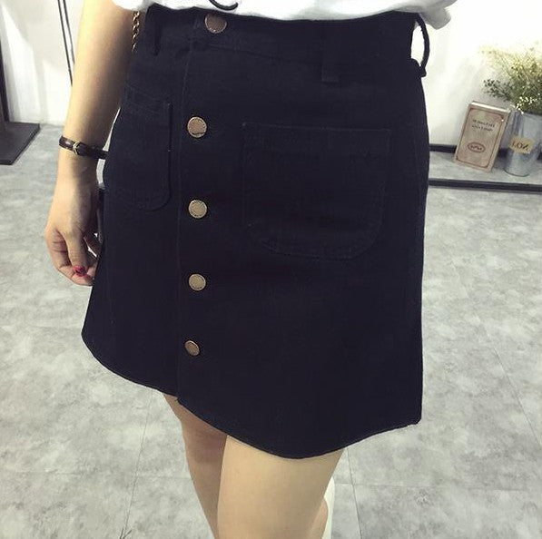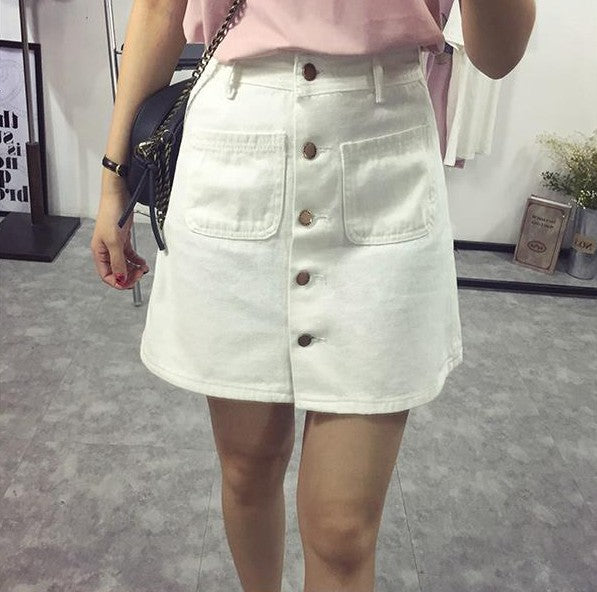 A-line Pencil Front Button High Waist Denim Small Pockets Skirt